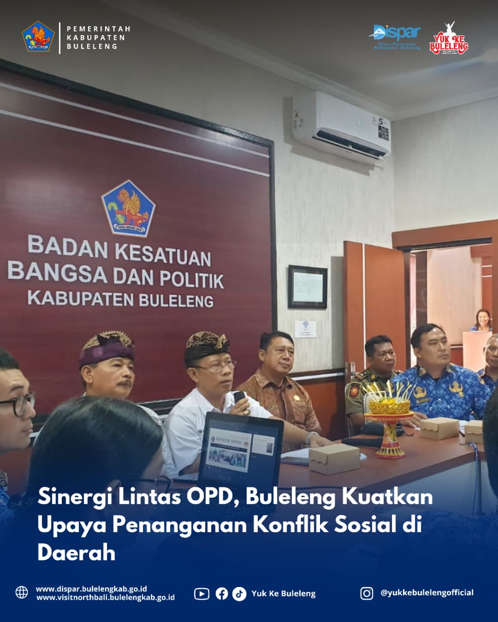 Buleleng 28 Oktober 2025 – Badan Kesatuan Bangsa dan Politik (Kesbangpol) Kabupaten Buleleng menggelar rapat penting mengenai Penanganan Konflik Sosial yang terjadi di wilayah Kabupaten Buleleng. Pertemuan yang dilaksanakan di ruang rapat Kesbangpol ini dipimpin langsung oleh Kepala Badan (Kaban) Kesbangpol dan dipandu oleh Kepala Bidang Kewaspadaan Nasional.