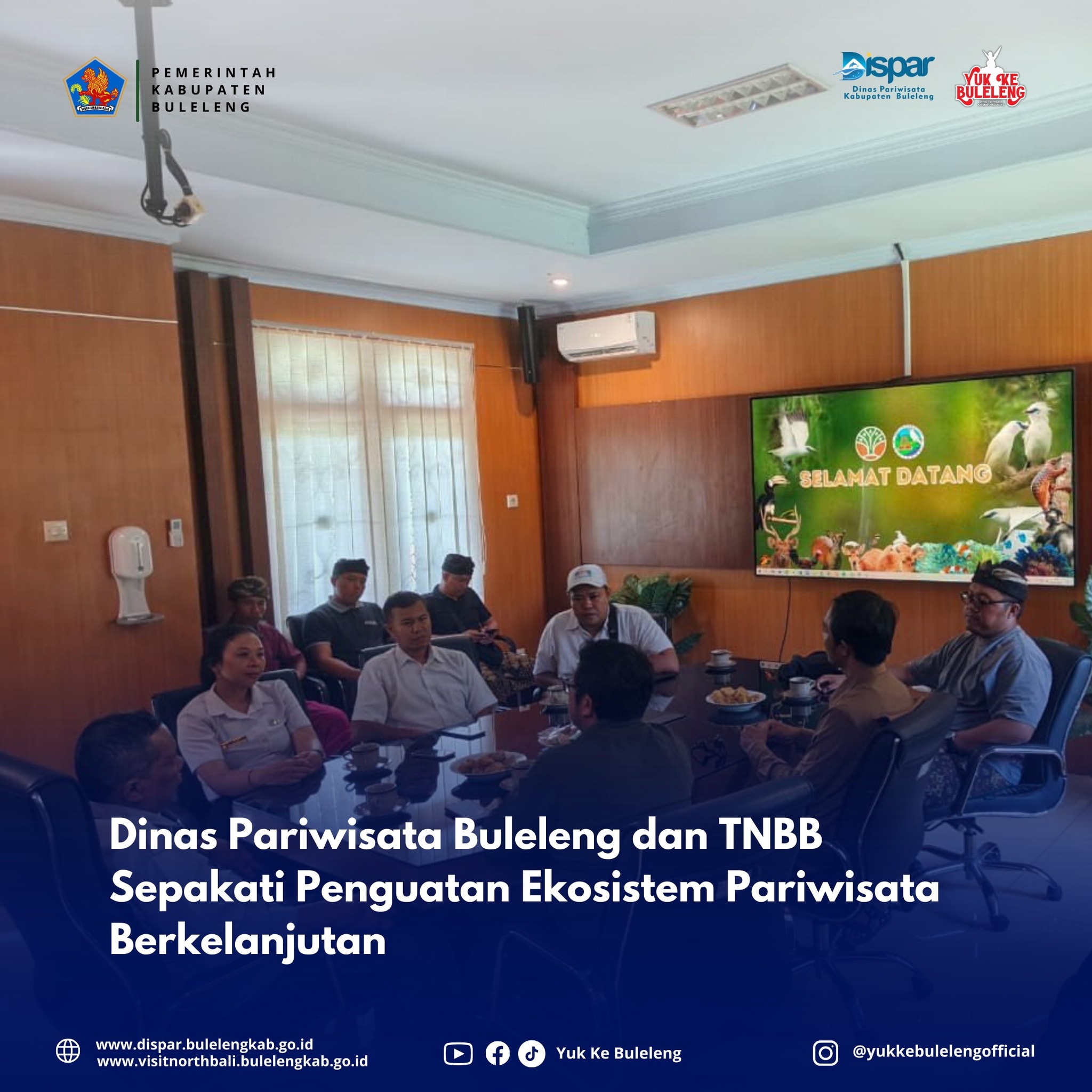 M.Sc. selaku Fungsional PEH Madya. Pertemuan berlangsung hangat dan produktif, disertai apresiasi pihak TNBB terhadap inisiatif Dispar Buleleng dalam membangun sinergi yang lebih kuat untuk pengelolaan pariwisata berkelanjutan.