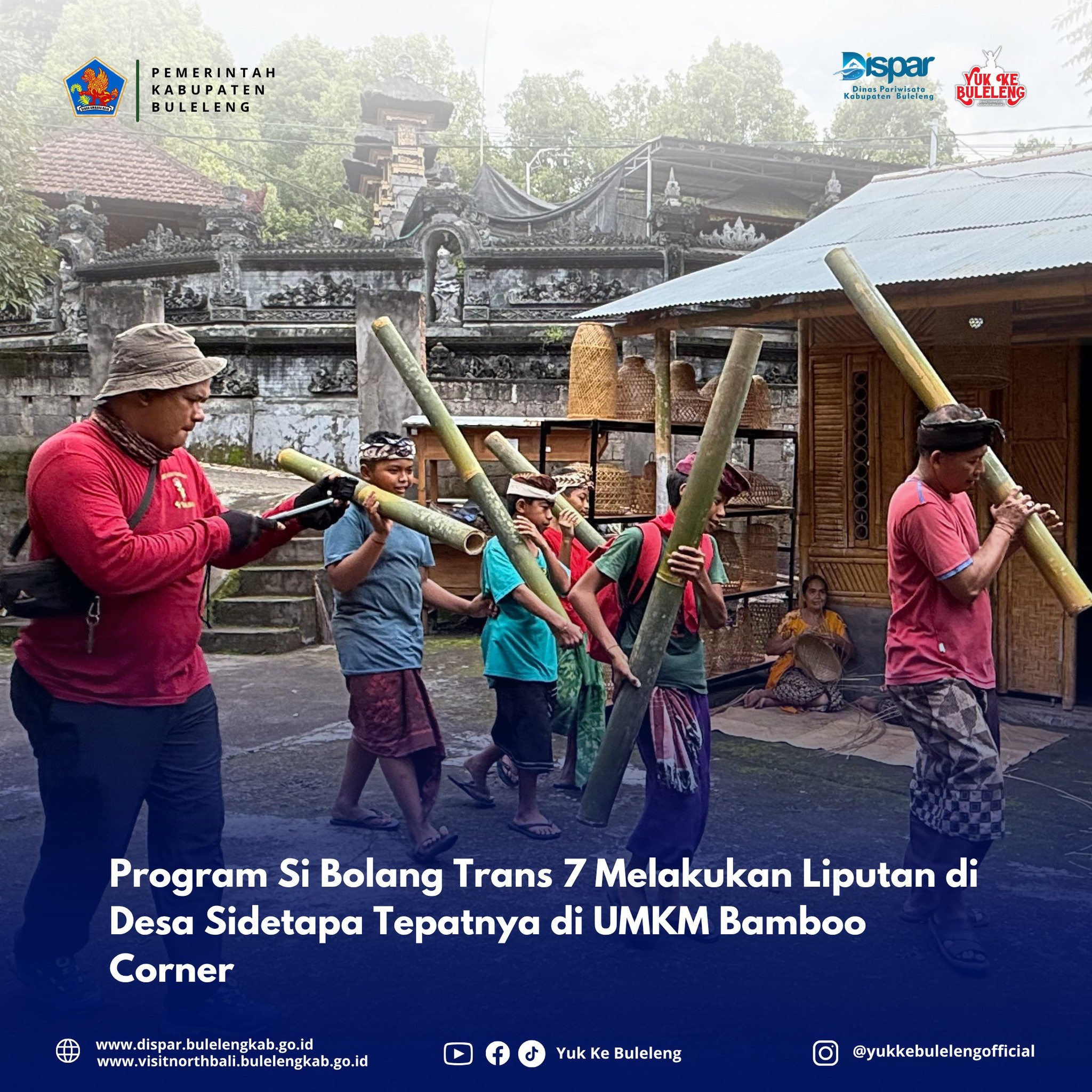Pada hari ini, tim Si Bolang melakukan pengambilan gambar di Desa Sidetapa, salah satu desa tua di kawasan Bali Aga yang dikenal akan keunikannya dalam mempertahankan adat dan tradisi leluhur. Lokasi syuting kali ini berpusat di UMKM Bamboo Corner Handicraft, tempat di mana kreativitas warga lokal dalam mengolah bambu menjadi beragam produk bernilai seni tinggi menjadi daya tarik utama.