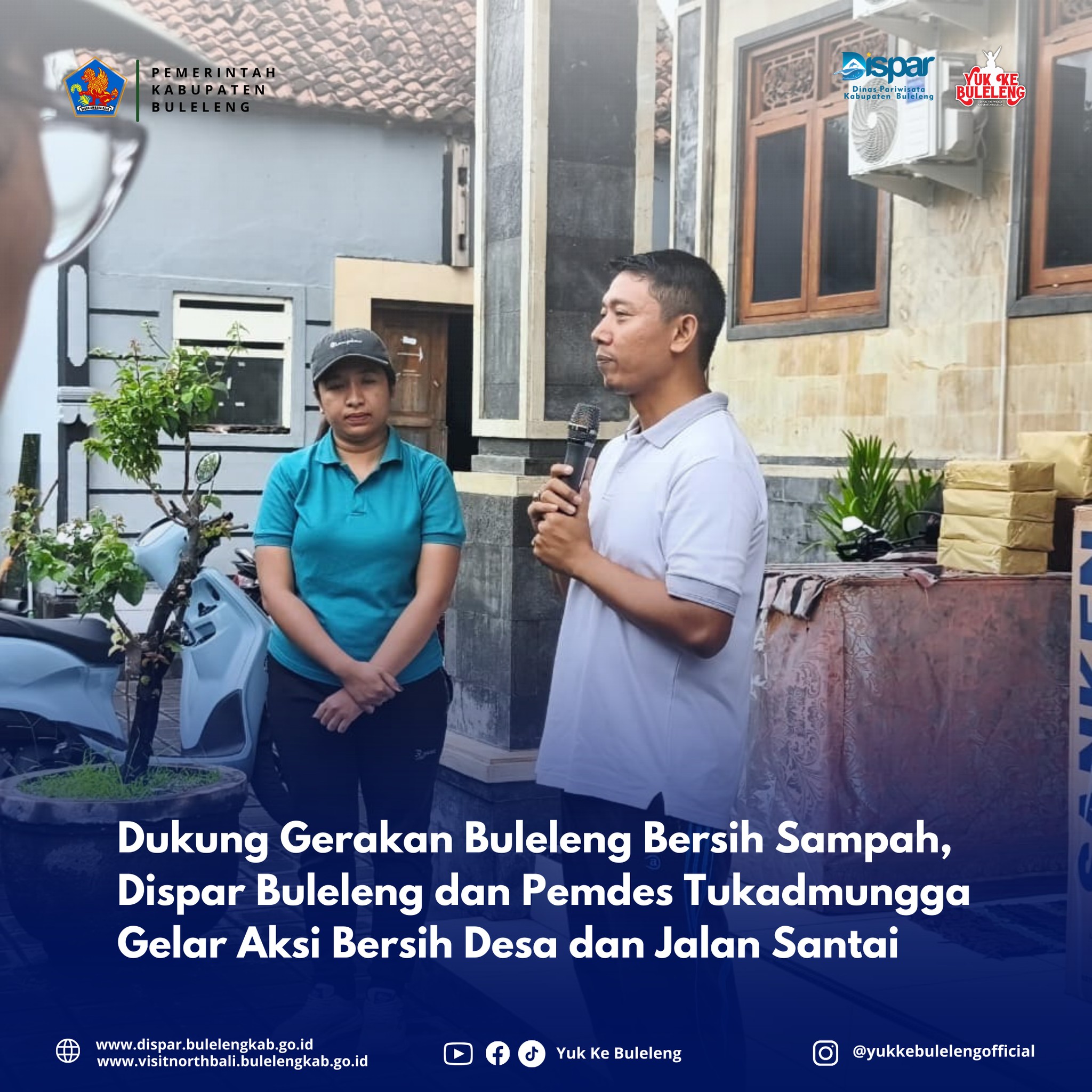 Dalam rangka mendukung gerakan Buleleng Bersih Sampah, Dinas Pariwisata Kabupaten Buleleng bersama Pemerintah Desa Tukadmungga menggelar kegiatan pembersihan bersama di wilayah Desa Tukadmungga dan sekitarnya, yang dirangkaikan dengan kegiatan jalan santai, pada Jumat, 23 Januari 2026.