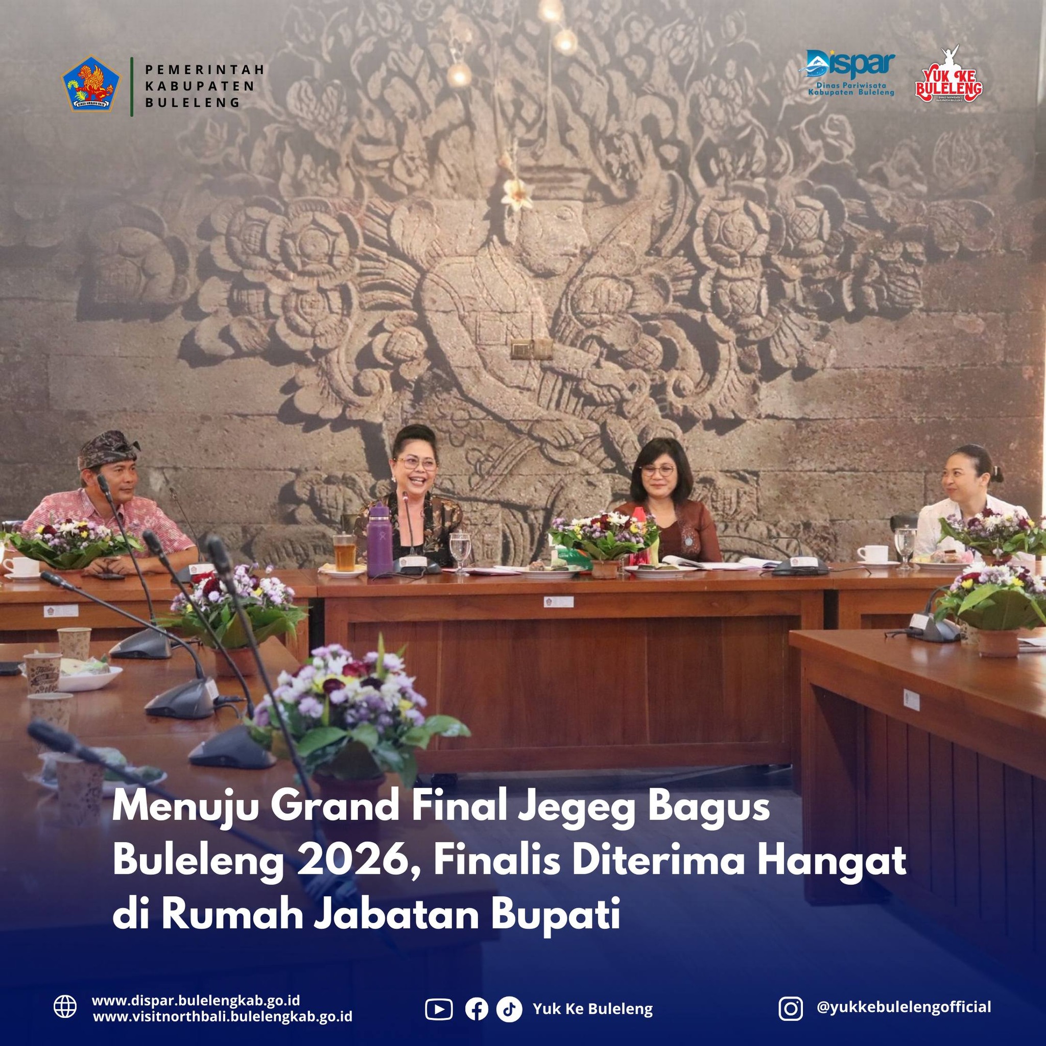 M.Si beserta Kepala Bidang Sumber Daya Pariwisata, Kadek Mila Pradnyani, S.S.,MAP mendampingi Semeton Jegeg Bagus Buleleng bersama 10 finalis Jegeg Bagus Buleleng Tahun 2026 melaksanakan audiensi kepada Ibu Bupati Buleleng. Kegiatan audiensi ini bertempat di Rumah Jabatan Buleleng.
