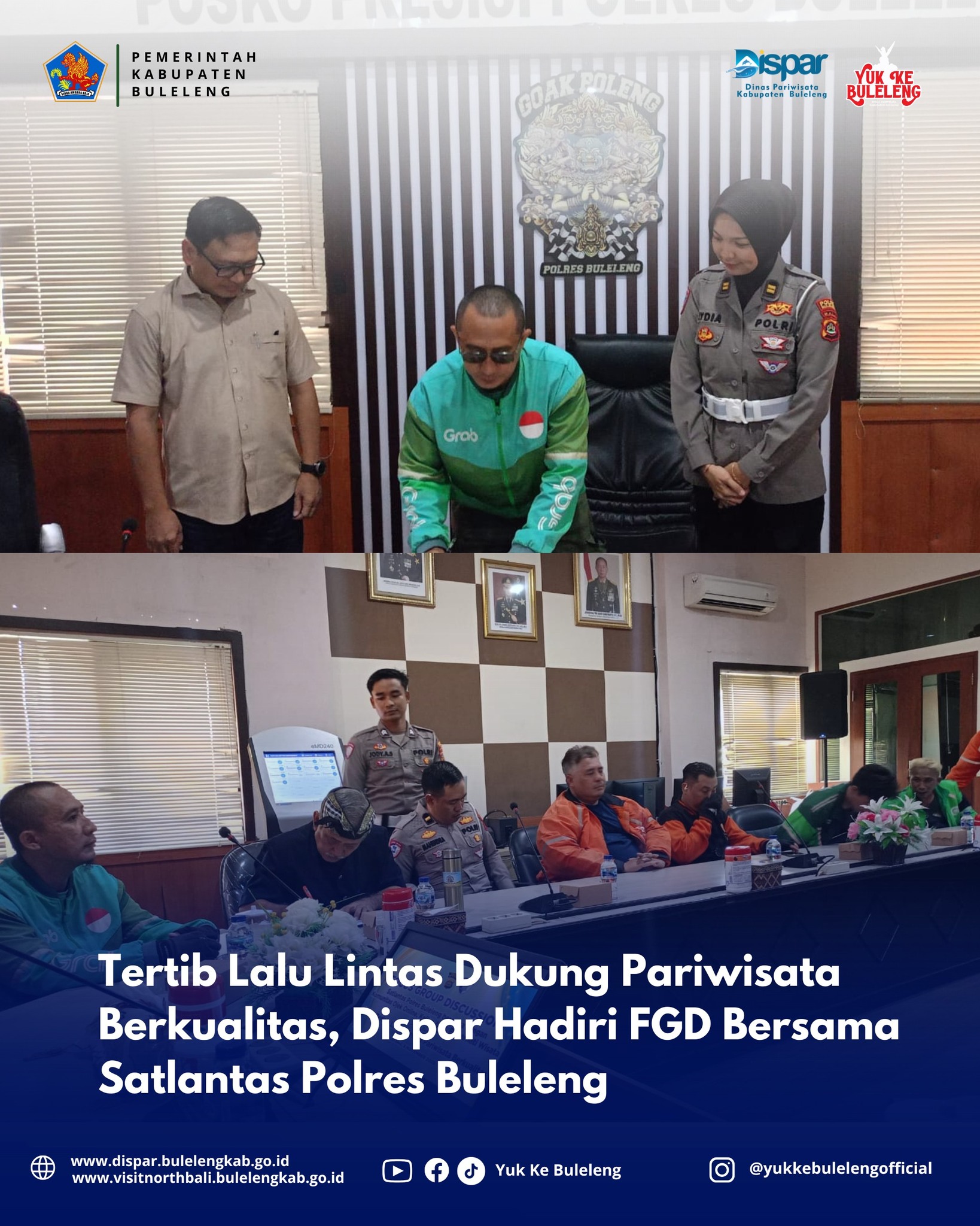 FGD yang bertajuk “Tertib Berlalu Lintas Menuju Pariwisata Berkualitas” ini menghadirkan berbagai pihak, di antaranya jajaran Satlantas Polres Buleleng, Kelian Desa Adat Buleleng, serta perwakilan dari komunitas OJOL Gojek, Grab, dan Shopee Food, juga pemerhati pariwisata.