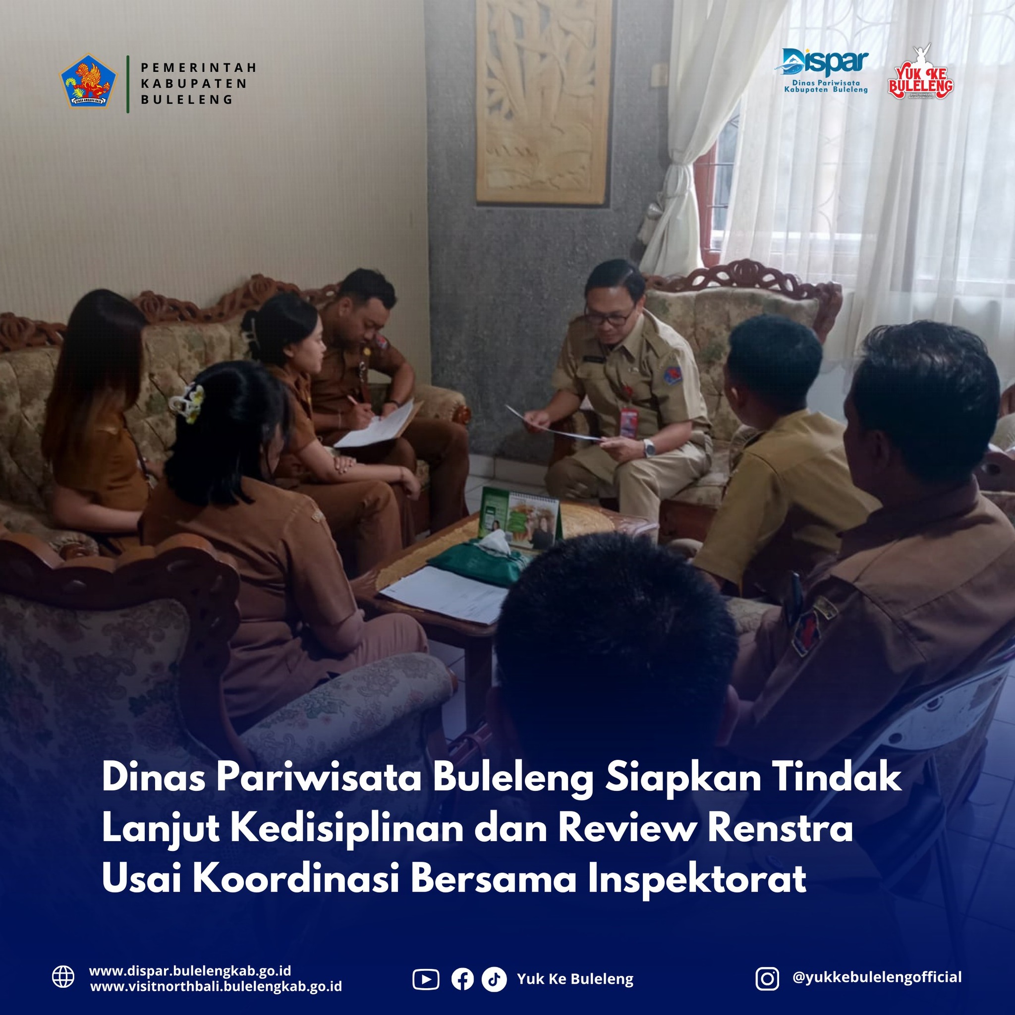 Pertemuan tersebut berlangsung di Kantor Dinas Pariwisata Kabupaten Buleleng dan menjadi bagian penting dari upaya penguatan tata kelola pemerintahan yang bersih, disiplin, dan akuntabel, khususnya di sektor pariwisata.