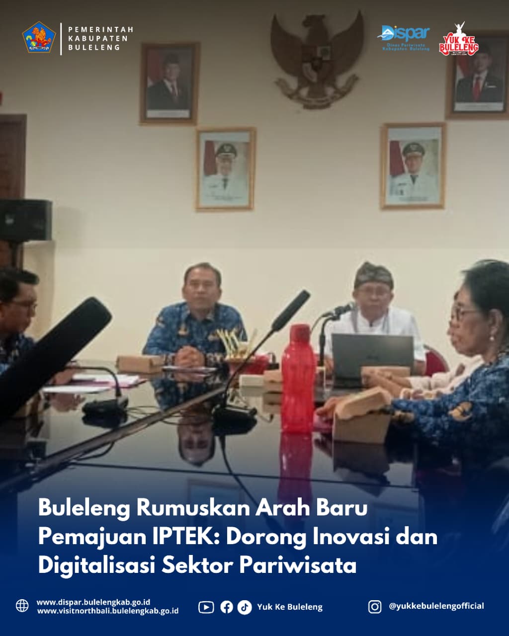 Rapat penting ini dipimpin oleh Sekretaris Brida drg. I Ketut Wika bersama Ketua Tim Peneliti, dan dihadiri oleh jajaran perangkat daerah terkait, Tim Pengendali Mutu, Tim Teknis, serta Tim Pengawas penyusunan dokumen dari dinas pariwisata Kabupaten Buleleng di hadiri oleh Kepala Bidang Destinasi pariwisata Ida Ayu Kade Septiani Utami , S.Pd., M.Par . Kehadiran berbagai unsur ini menegaskan komitmen Pemkab Buleleng dalam memastikan dokumen Rinduk dan Peta Jalan IPTEK tersusun secara komprehensif dan implementatif.