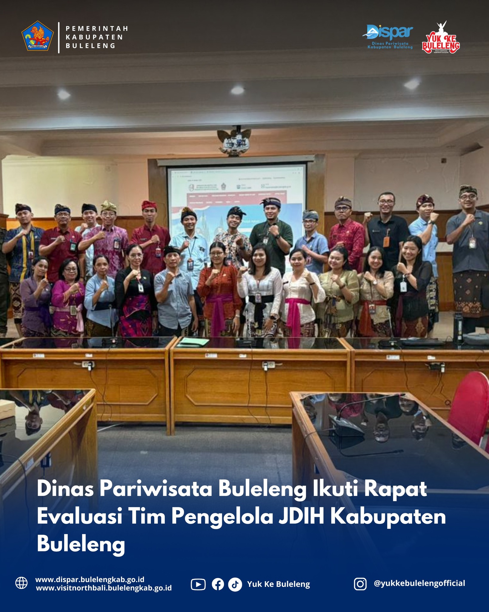 Singaraja, 16 Oktober 2025 – Bertempat di Gedung Unit IV Lantai II Kantor Bupati Buleleng, Adyatama Kepariwisataan dan Ekonomi Kreatif Ahli Muda pada Bidang Pemasaran, selaku anggota Tim Pengelola Jaringan Dokumentasi dan Informasi Hukum (JDIH) Dinas Pariwisata Kabupaten Buleleng, mengikuti Rapat Evaluasi Pelaksanaan Tugas Tim Pengelola JDIH Kabupaten Buleleng.